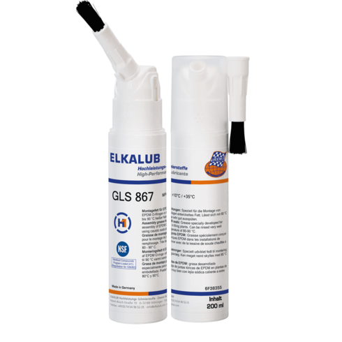 Elkalub GLS 867 został specjalnie opracowany do montażu pierścieni O-ring z EPDM w przemyśle napojów. Można go bardzo dobrze spłukać po montażu gorącym roztworem wodorotlenku sodu o temperaturze od 80oC do 90oC.
